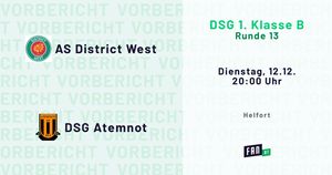Selbstvertrauen? Hat District West genug. Schließlich feierte man im letzten Ligaspiel einen 3:1-Sieg über DSG Athletes In Action, ist so mental auch für die kommende Partie gerüstet. Die Bilanz zuhause ist bei den Heimischen positiv. Es wurde öfter gewonnen (4) als verloren (1).