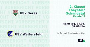 Die Tabelle der 2. Klasse Thayatal/Schmidatal spuckt Weitersfeld vor Geras aus. Ob man damit gleich der Favorit ist, wird sich erst weisen.
