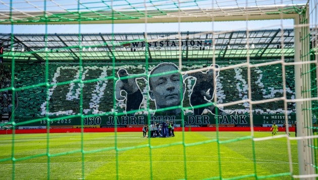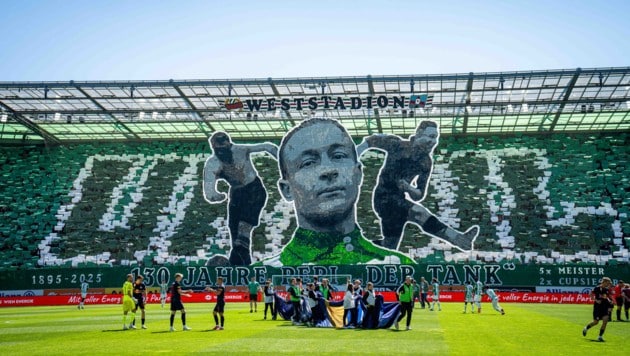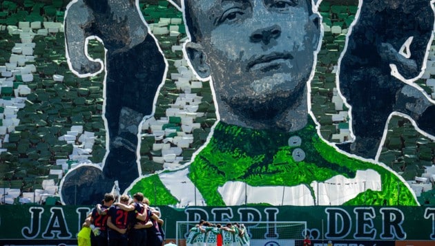 So mittelmäßig das Spiel Rapid gegen Salzburg lange Zeit verlief – so spektakulär war die von den „Block West“-Fans inszenierte Choreografie vor Anpfiff. Sie galt einem der größten Grün-Weißen der Geschichte.